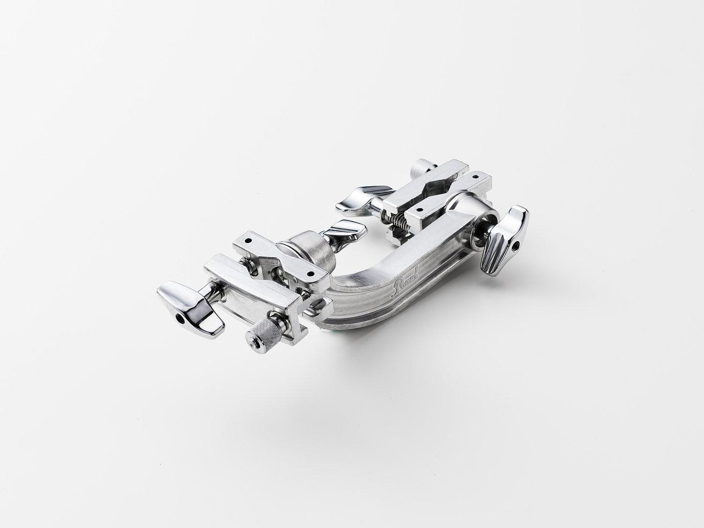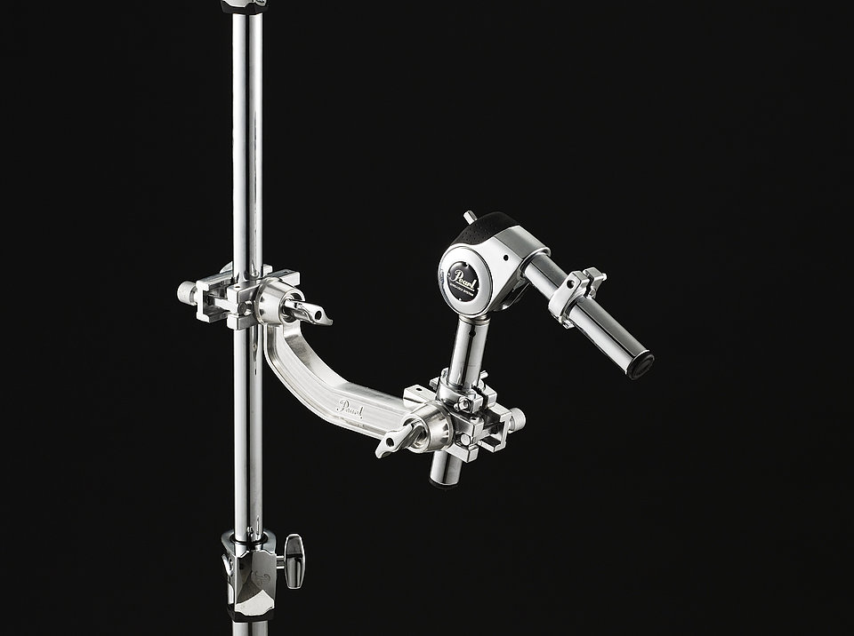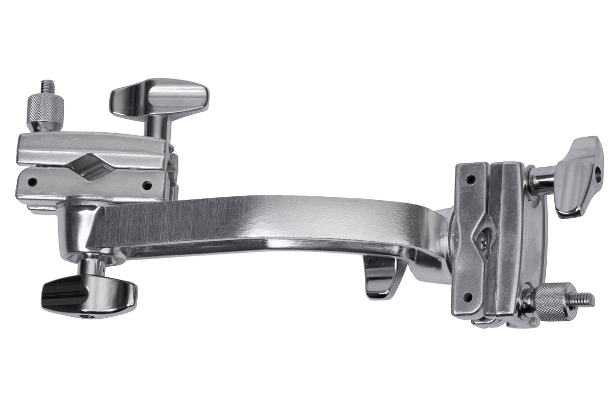 Long two-way angle adaptor clamp from Pearl for flexible and secure mounting of tom arms, cymbal holders, or accessories.